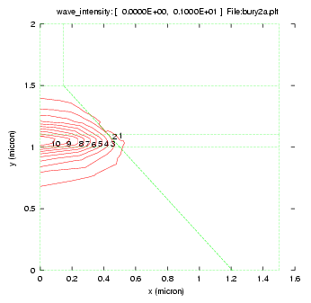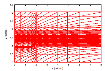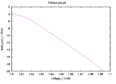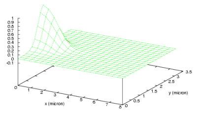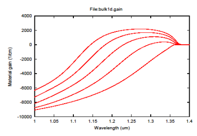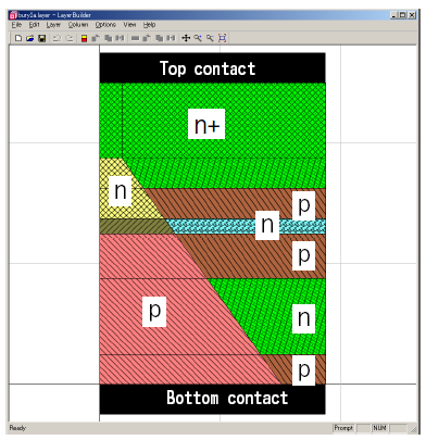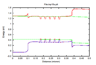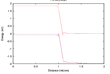 デバイス中央部、縦方向のバンド図(平衡状態計算時)。